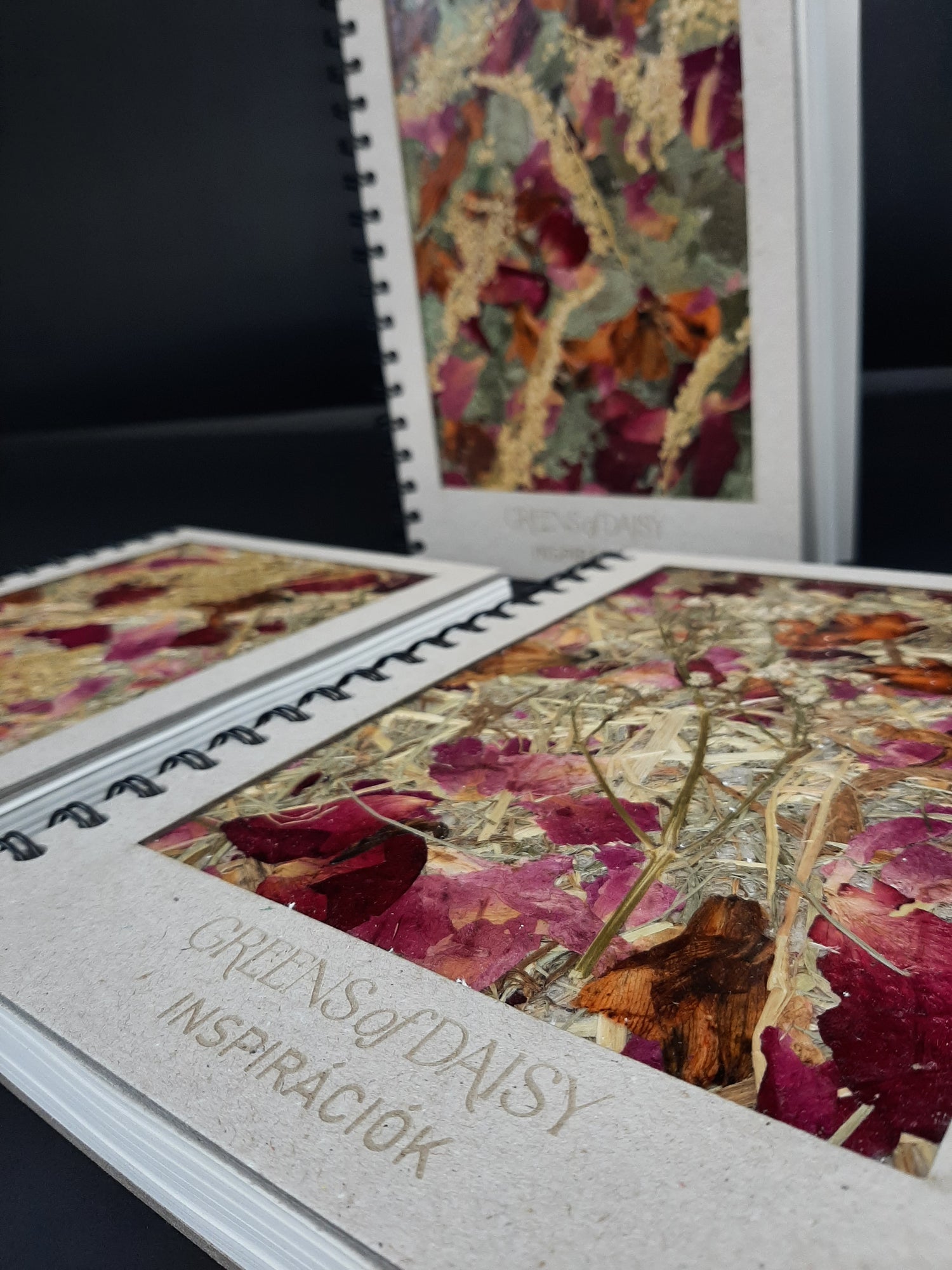 - Ez egy limitált példányszámú kiadvány, minden borító teljesen egyedi, valódi szárított virágokból, növényekből készül.